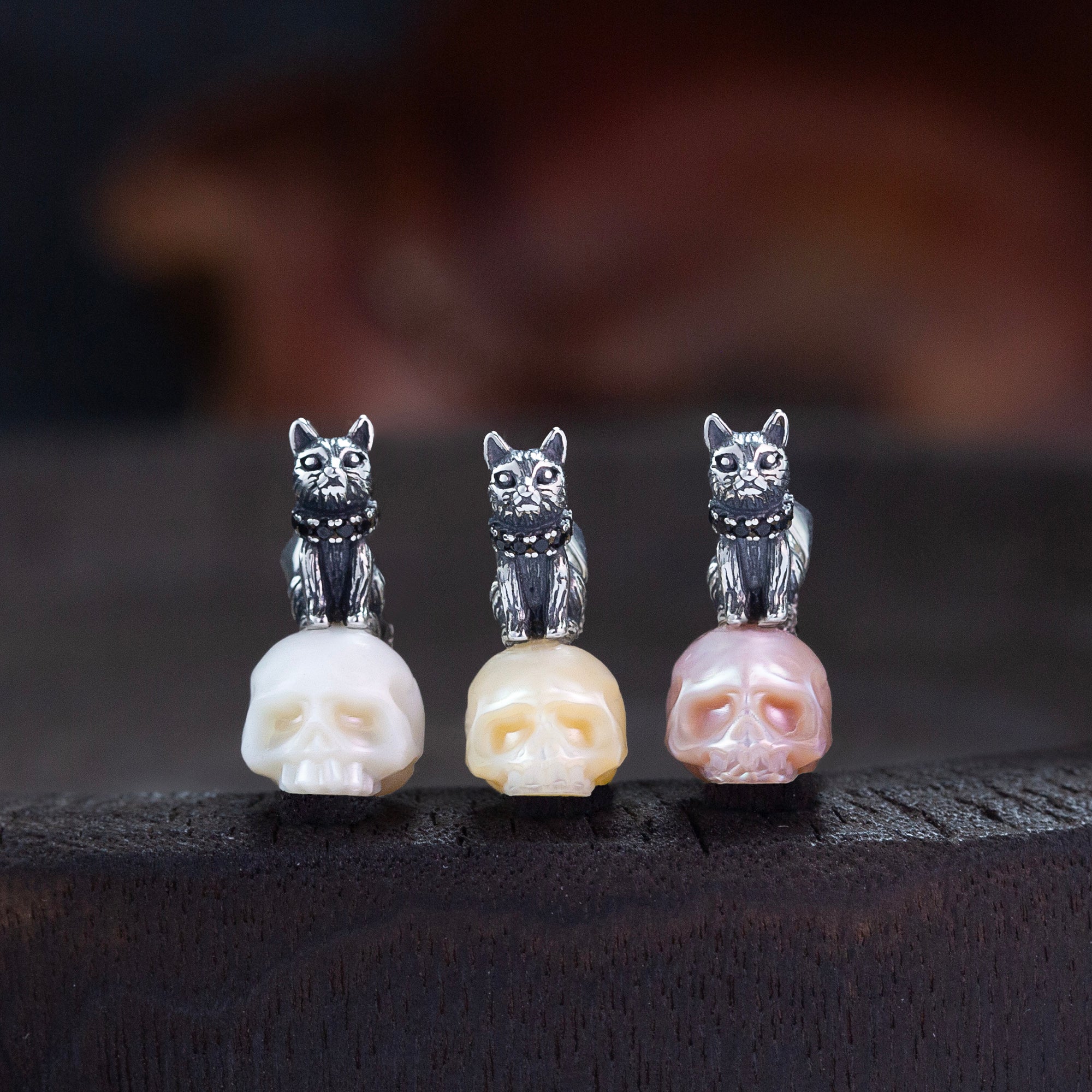 Carved Pearl Skull Śmaśana Gemstone Bead Necklace