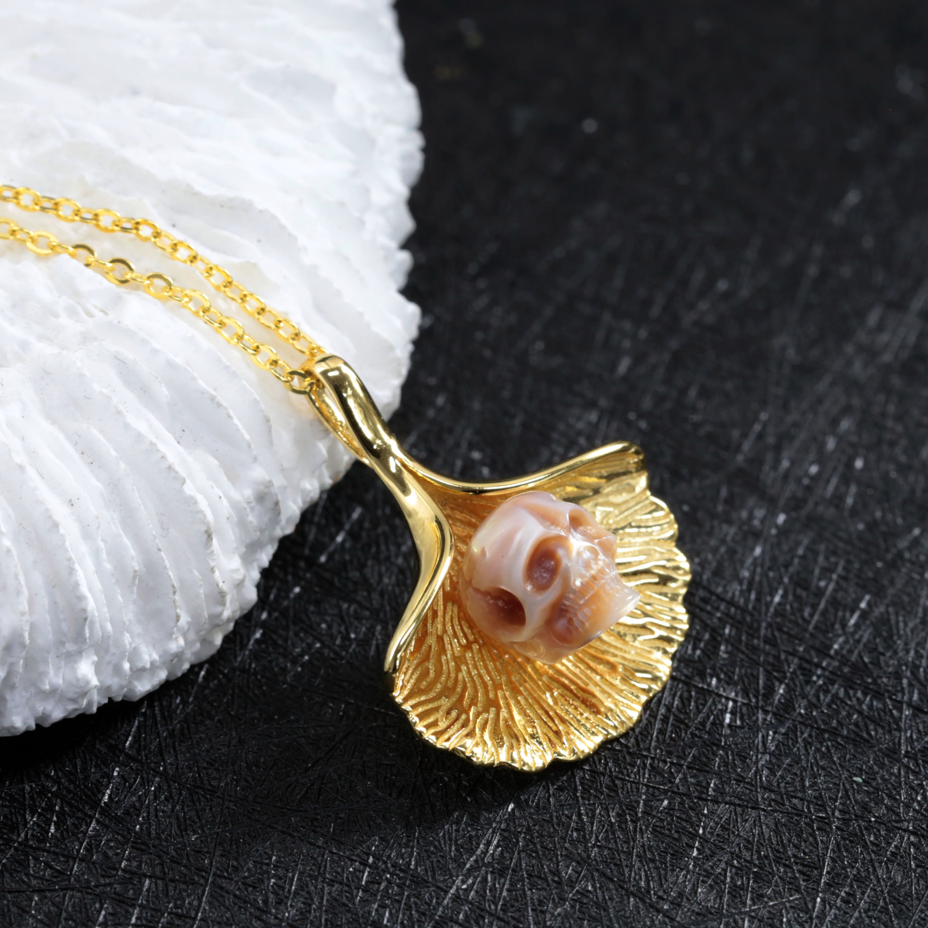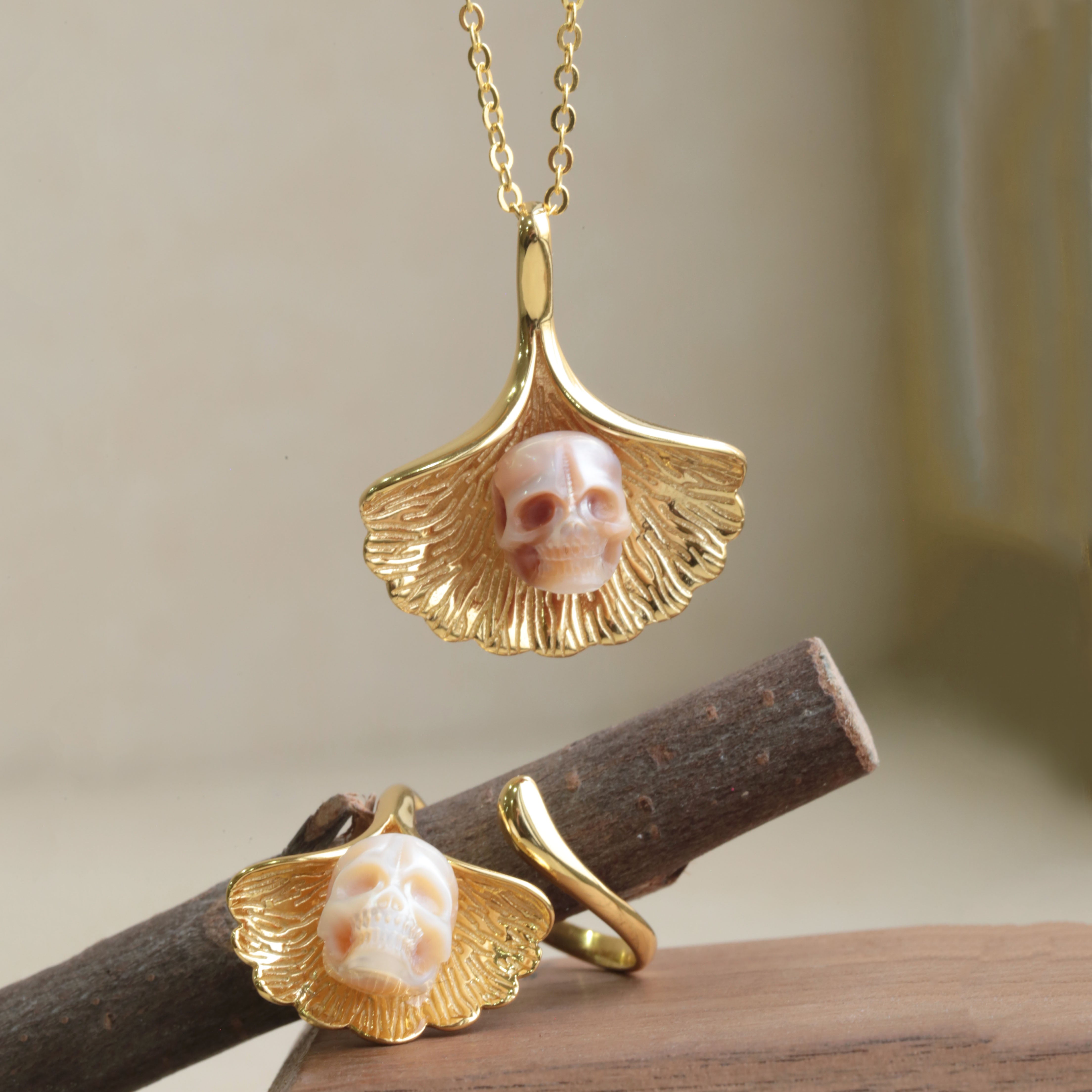Schmuckset mit Ginkgoblatt-Perlenschädel